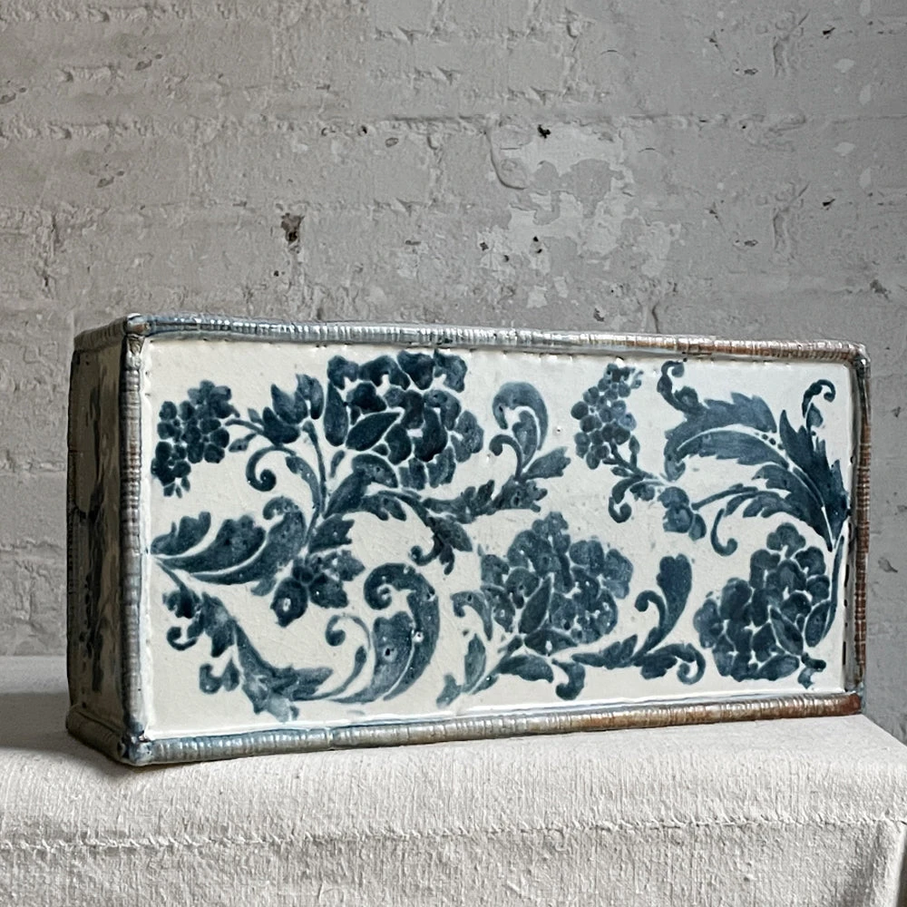 Brooklyn based ceramicist Amanda Moffat draws inspiration from classic fabrics and Piranesi sketches for her hand thrown pieces. The blue and white stoneware bowls, plates, platters and vases from her Indigo collection are painted with porcelain and then glazed, resulting in finishes that vary from shades of white to smoky grays and rust tones.