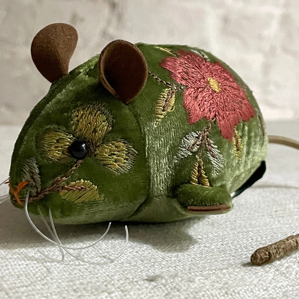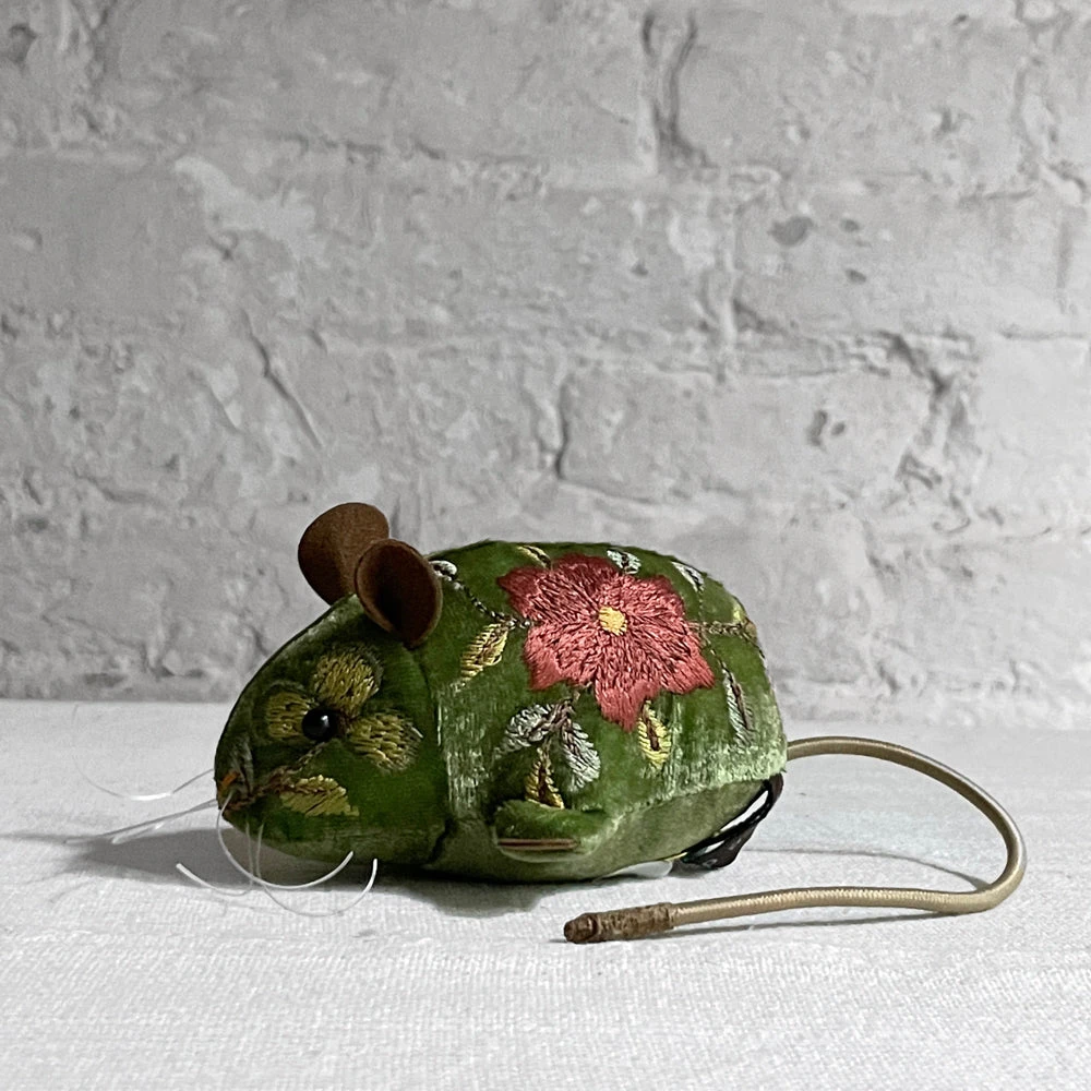 Anke Drechsel Abby Silk Velvet Embroidered Mouse In Emerald Anke Drechsel Embroidered Animals