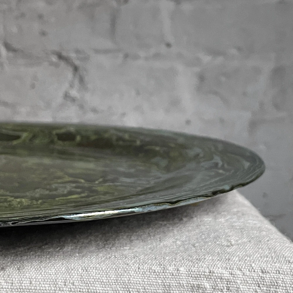 Sylvie Saint-Andre Perrin achieves the marble effect of her line of ceramics by a process called stamping. Each color of clay is created by mixing in various oxides that are then swirled and shaped using plaster molds.