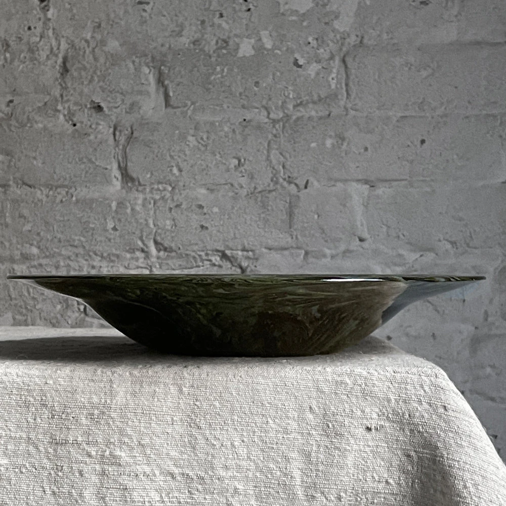 Sylvie Saint-Andre Perrin achieves the marble effect of her line of ceramics by a process called stamping. Each color of clay is created by mixing in various oxides that are then swirled and shaped using plaster molds.