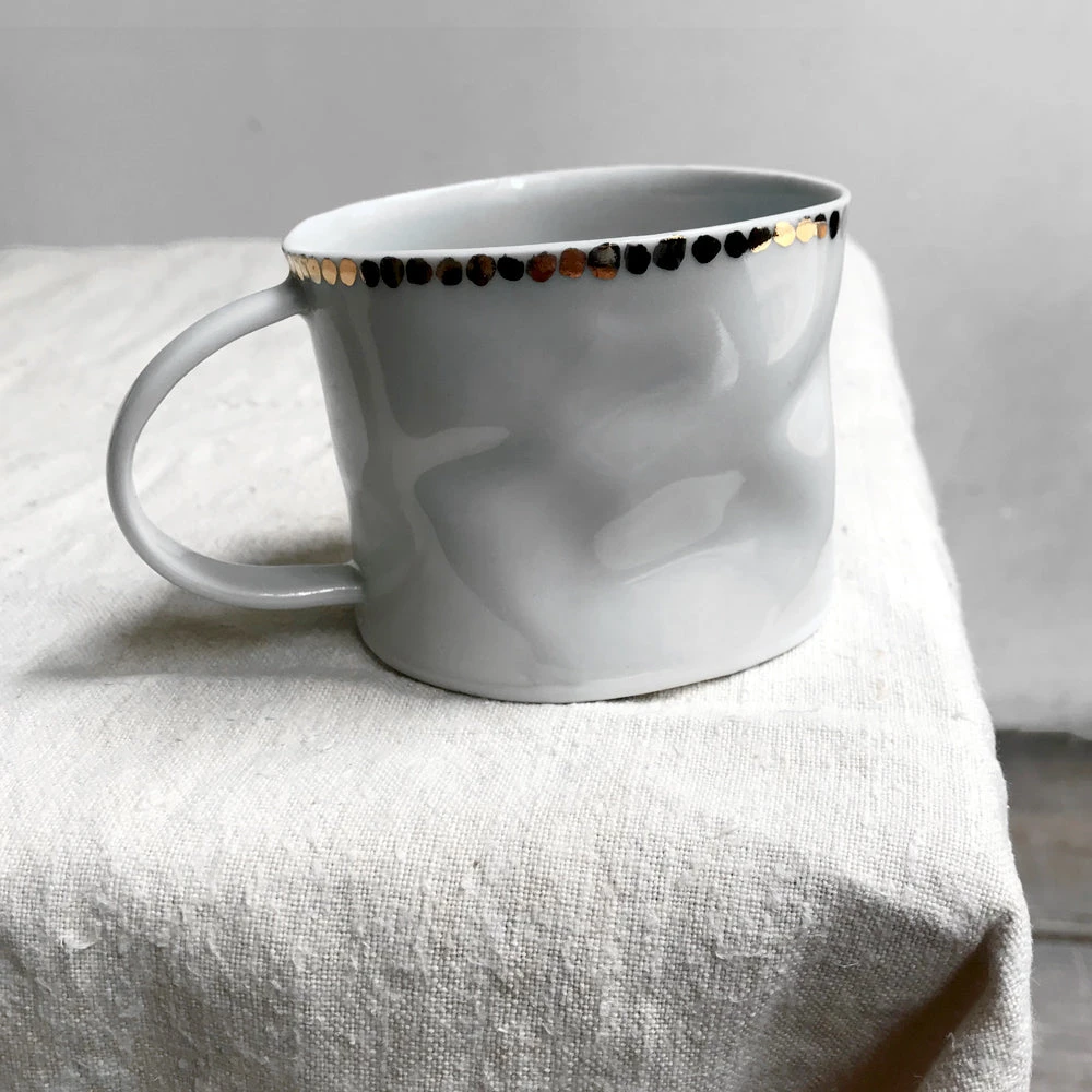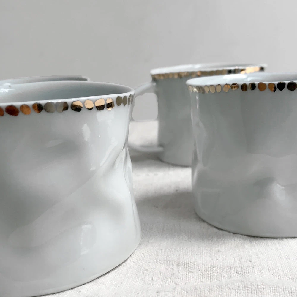 Inspired by the music, art and ornamentation of the Baroque and Renaissance era’s, Botticelli Ceramics’s collection of porcelain dishes and saucers are handmade in NYC with unique variations and 14K gold accents.