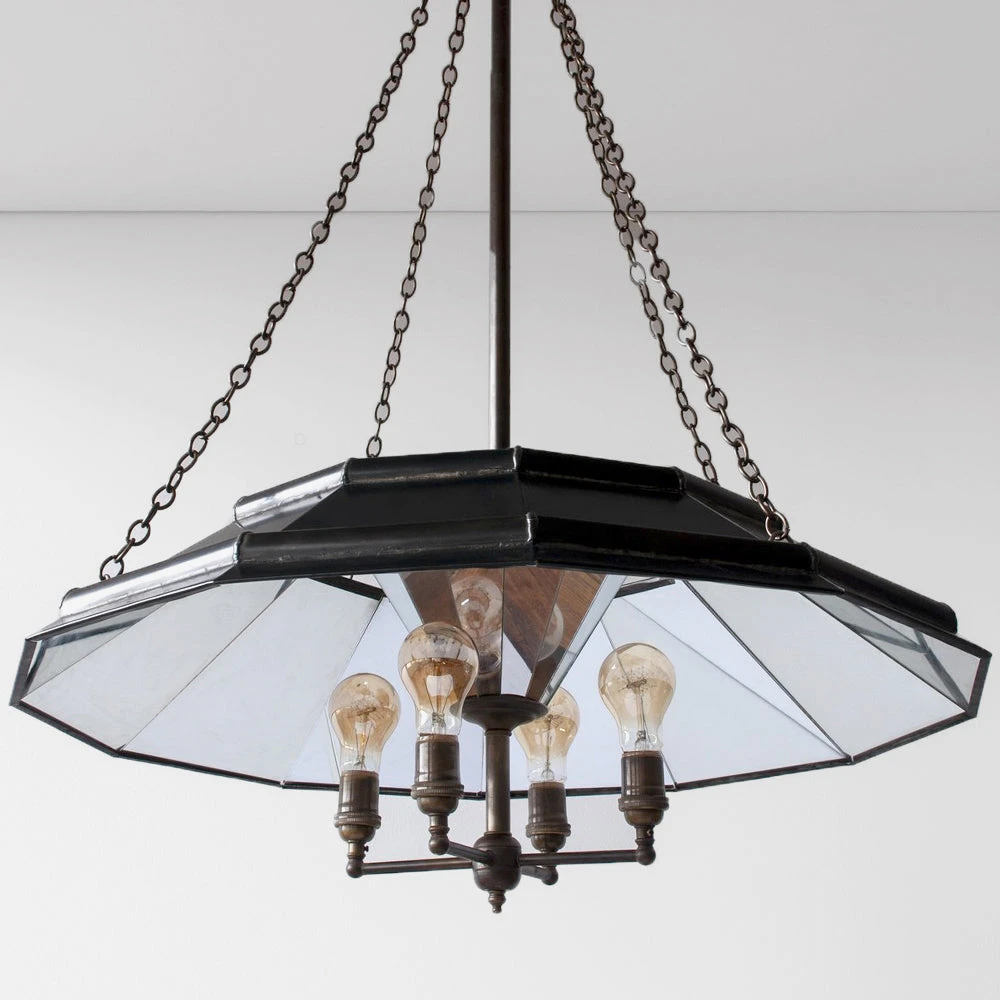 Robert Ogden creates pendants and chandeliers with an antique feel, as well as one-of-a-kind table and floor lamps using found industrial parts and antique shades. A true homage to turn of the century lighting design, each fixture is meticulously fabricated with hand-cut mirrored glass and carefully finished with a hand-patinated oil rubbed bronze creating subtle romantic variances in each piece.