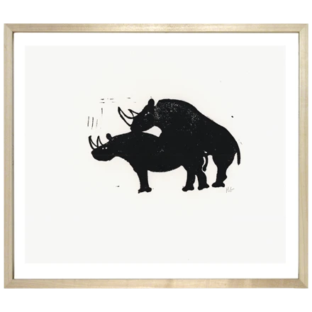 These whimsical linocuts are printed by hand on fine Italian paper in Hugo’s Brooklyn studio. Printed with India ink and signed by the artist, each print is unique and ink application and paper color will vary from print to print.