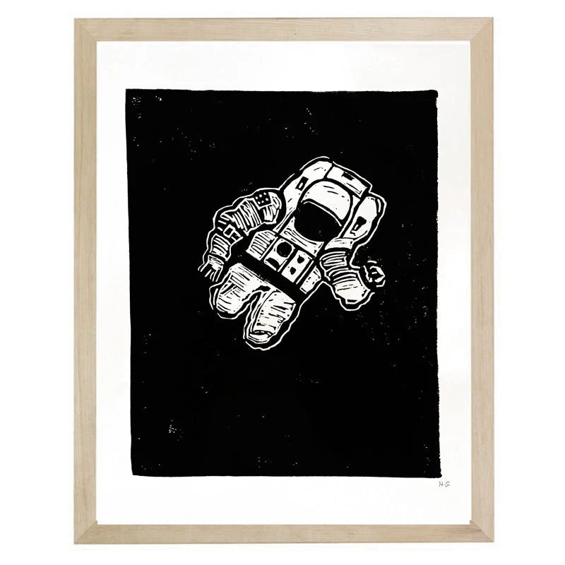 These whimsical linocuts are printed by hand on fine Italian paper in Hugo’s Brooklyn studio. Printed with India ink and signed by the artist, each print is unique and ink application and paper color will vary from print to print.