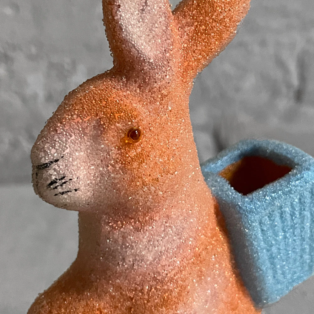 Ino Schaller Art & Objects Small Papier-Mâché Beaded Standing Glitter Bunny In Orange