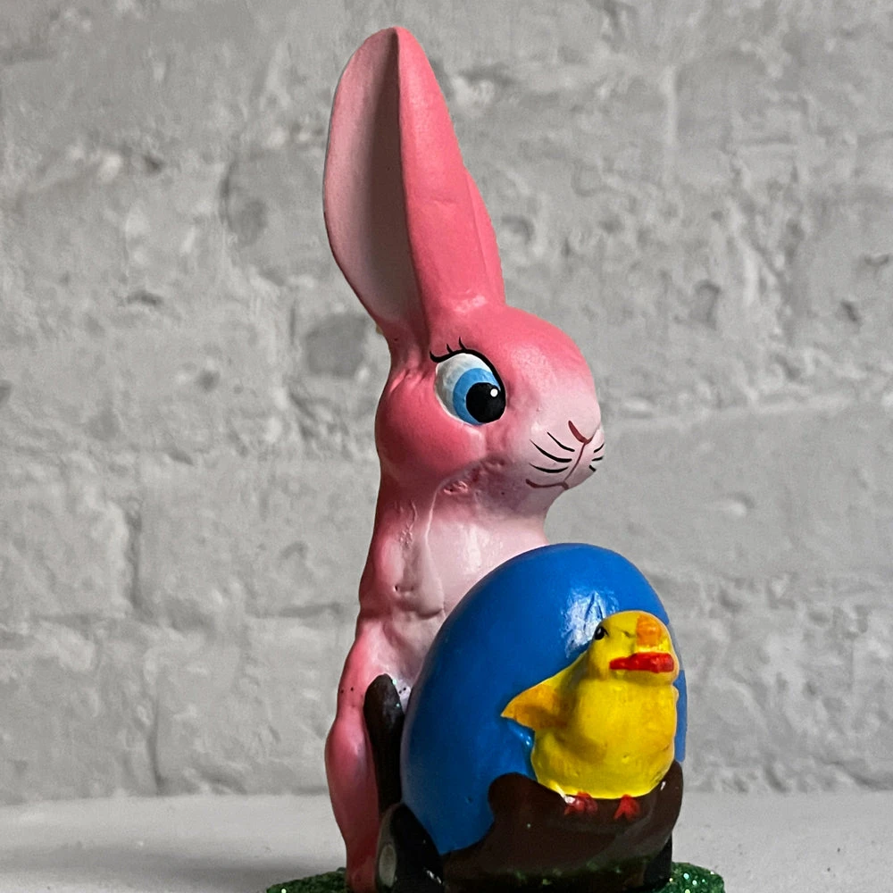 Ino Schaller Papier Mâché Pink Bunny With Egg Cart Art & Objects
