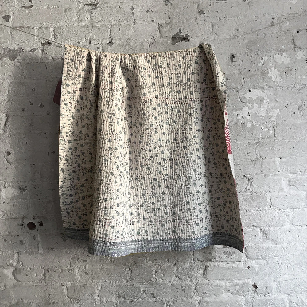 Based in London, Jeanette Farrier travels to India several times a year to collect vintage cotton sari fabrics for her line of kantha pillows and blankets. With her distinct eye for matching and coordinating colors and patterns, the results are truly special one of a kind pieces.
