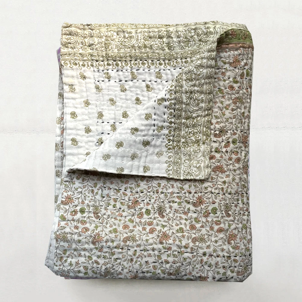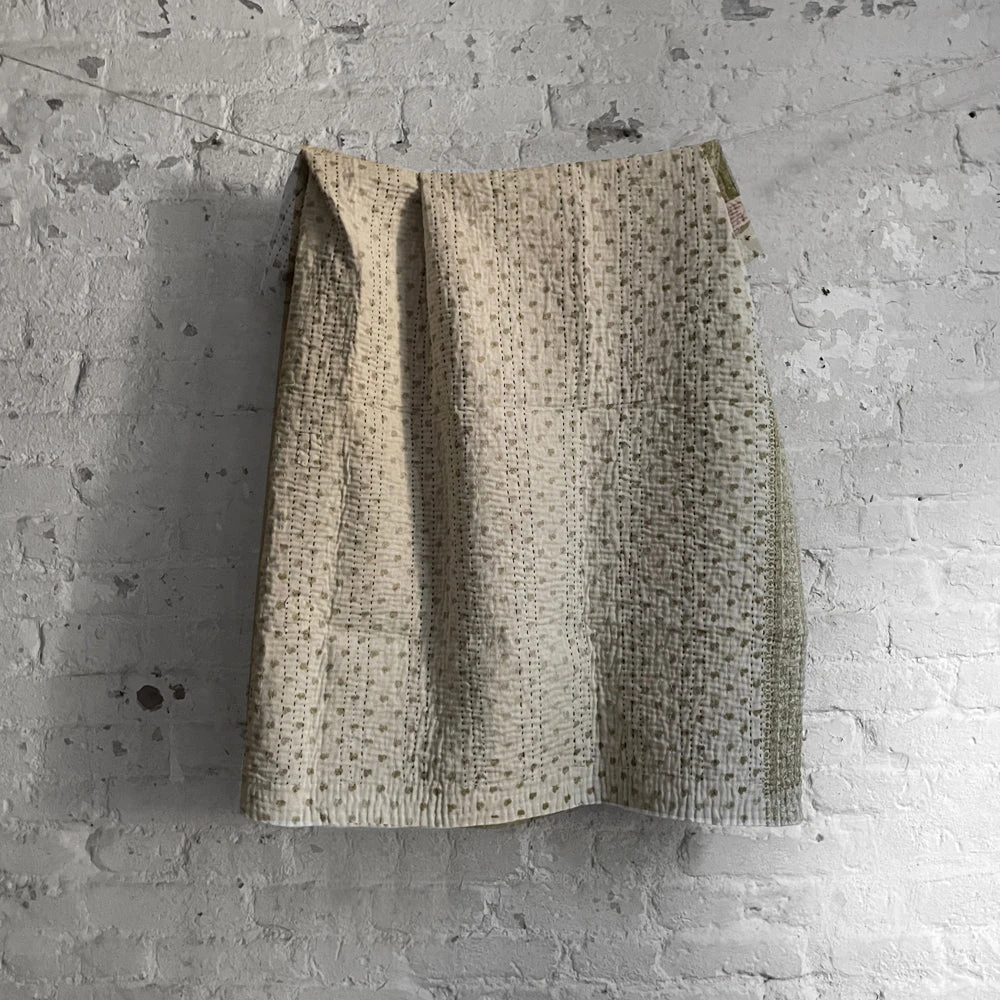 Based in London, Jeanette Farrier travels to India several times a year to collect vintage cotton sari fabrics for her line of kantha pillows and blankets. With her distinct eye for matching and coordinating colors and patterns, the results are truly special one of a kind pieces.