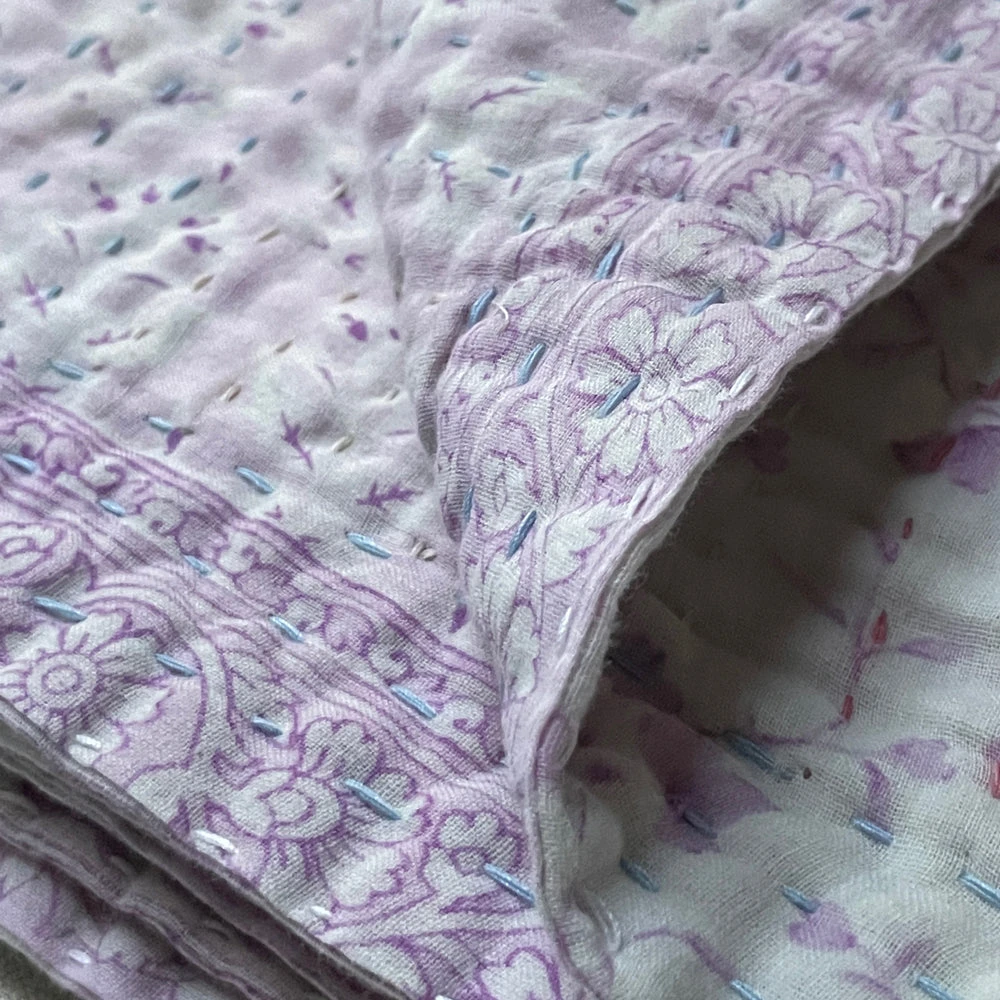 Based in London, Jeanette Farrier travels to India several times a year to collect vintage cotton sari fabrics for her line of kantha pillows and blankets. With her distinct eye for matching and coordinating colors and patterns, the results are truly special one of a kind pieces.