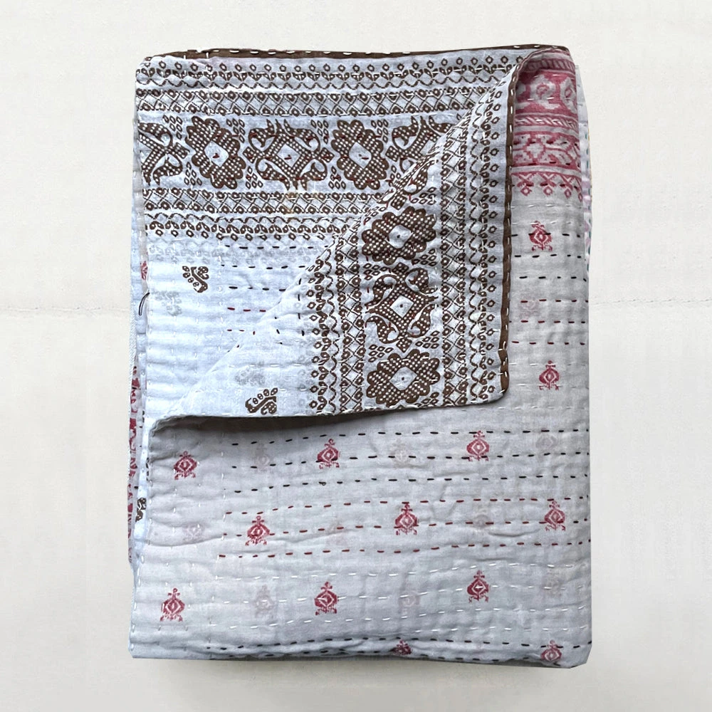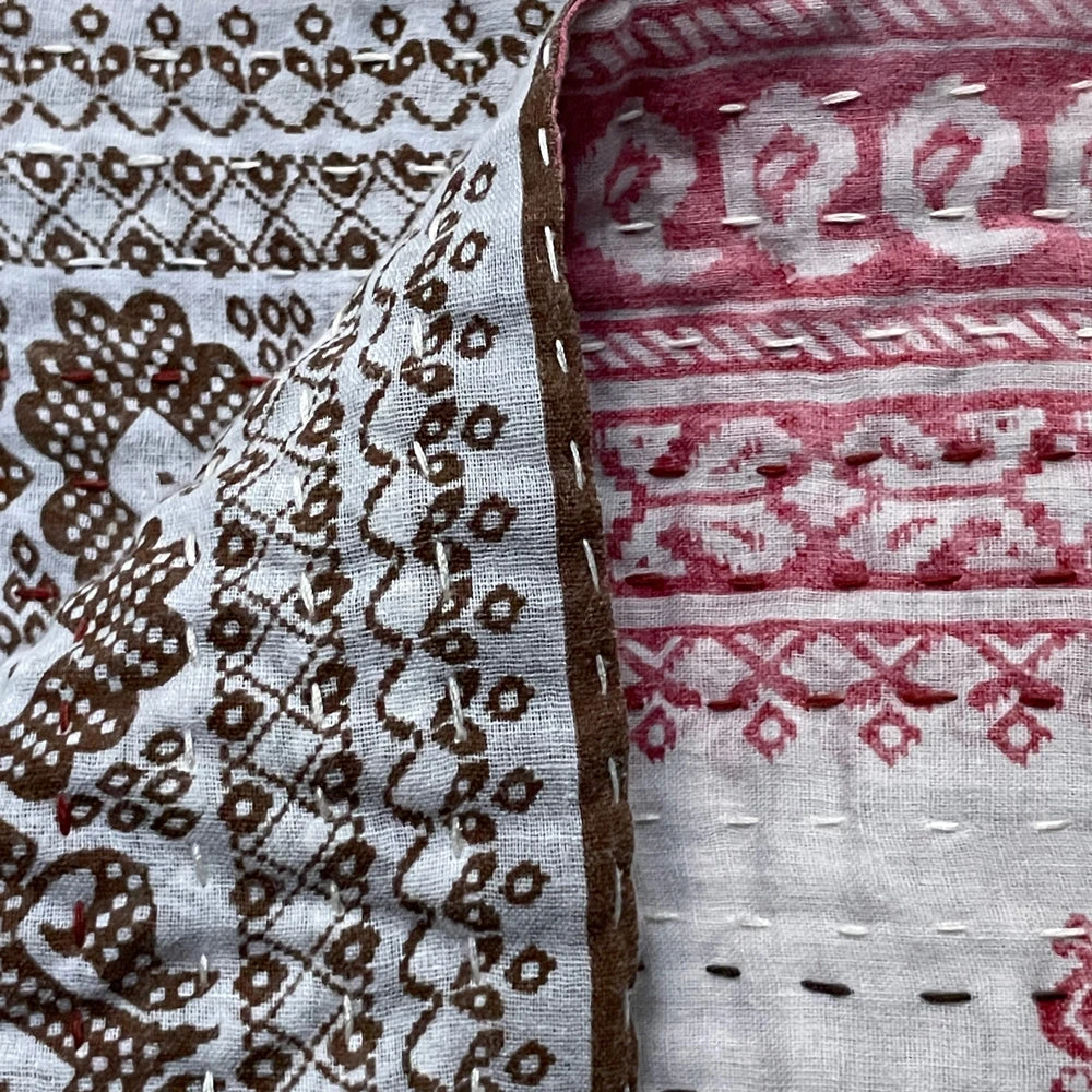 Based in London, Jeanette Farrier travels to India several times a year to collect vintage cotton sari fabrics for her line of kantha pillows and blankets. With her distinct eye for matching and coordinating colors and patterns, the results are truly special one of a kind pieces.