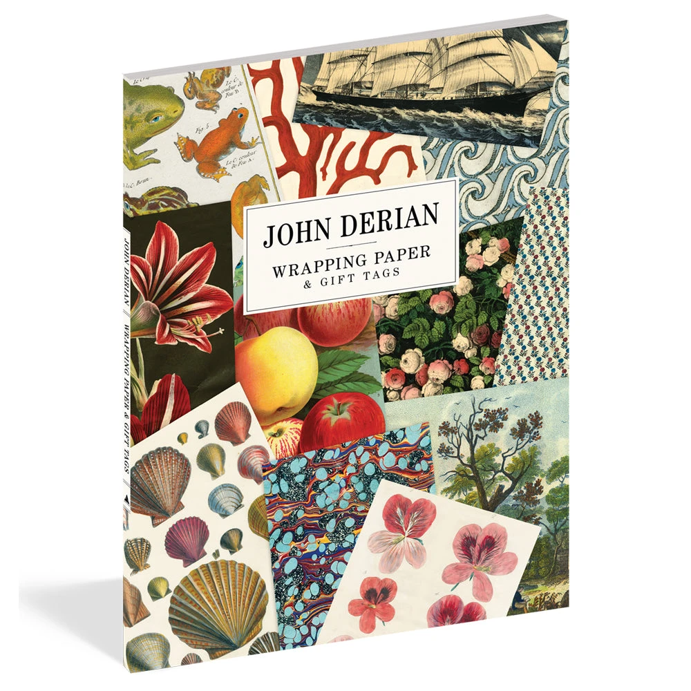 A curated collection of wrapping paper sheets and matching gift tags from John Derian’s exquisite collection of 19th-century paper designs. The book includes 12 perforated wrapping paper sheets—from flowers to oceans and everything in between—that detach and unfold to 18 7/8″ by 25 3/4″, along with 12 matching gift tags. View the entire collection here. Â