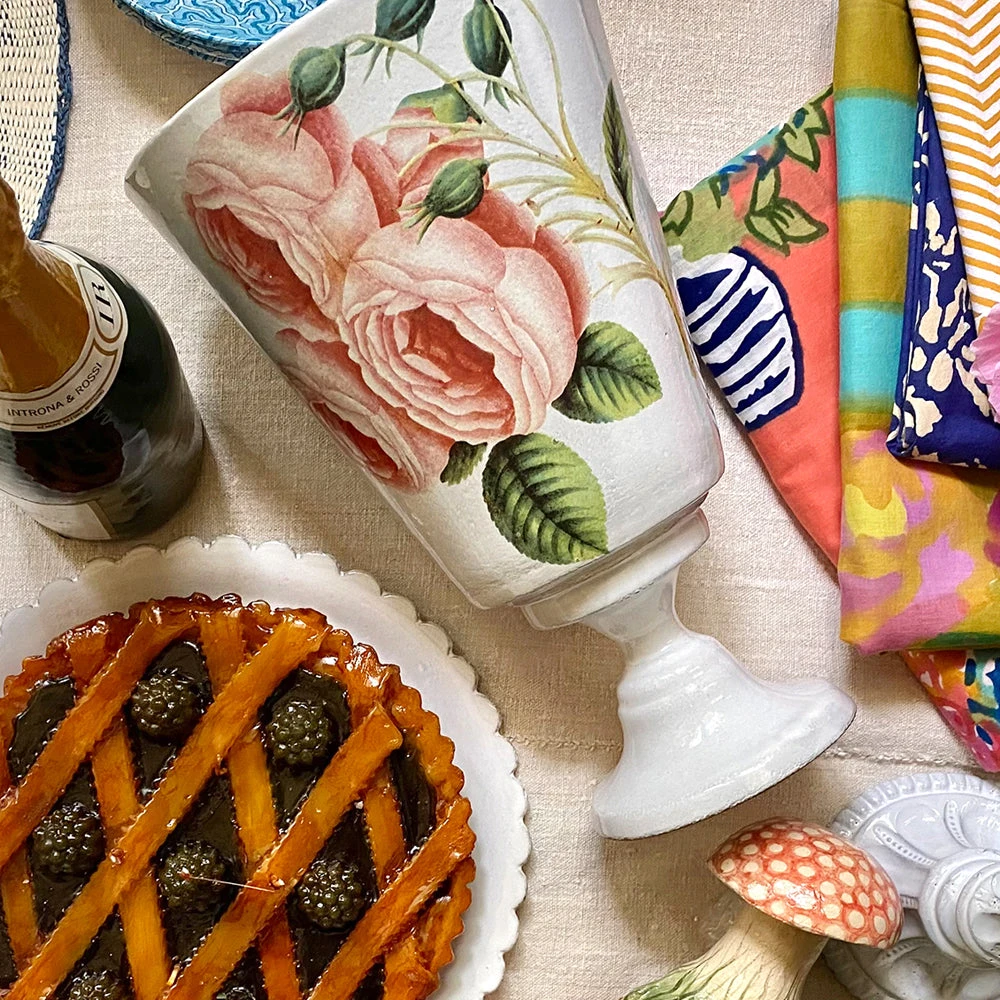 John Derian teamed up with Astier de Villatte to add his iconic imagery to their classic white tableware. The 19th-century inspired patterns and images perfectly complement the handmade ceramics. Learn more about Astier de Villatte here.