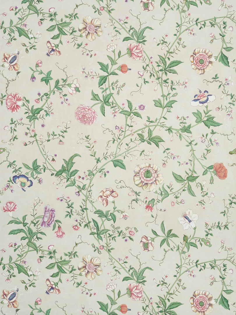 Le Paravent Chinois is a reproduction of a panel owned by John Derian. With floral chinoiserie dating from the 18th century, the wallpaper is reproduced in its original color, as well as two signature Maison tones. It also evokes painted silks imported from China called “Pekins”. Depending on the color, it is printed on a matte or iridescent non-woven backing.