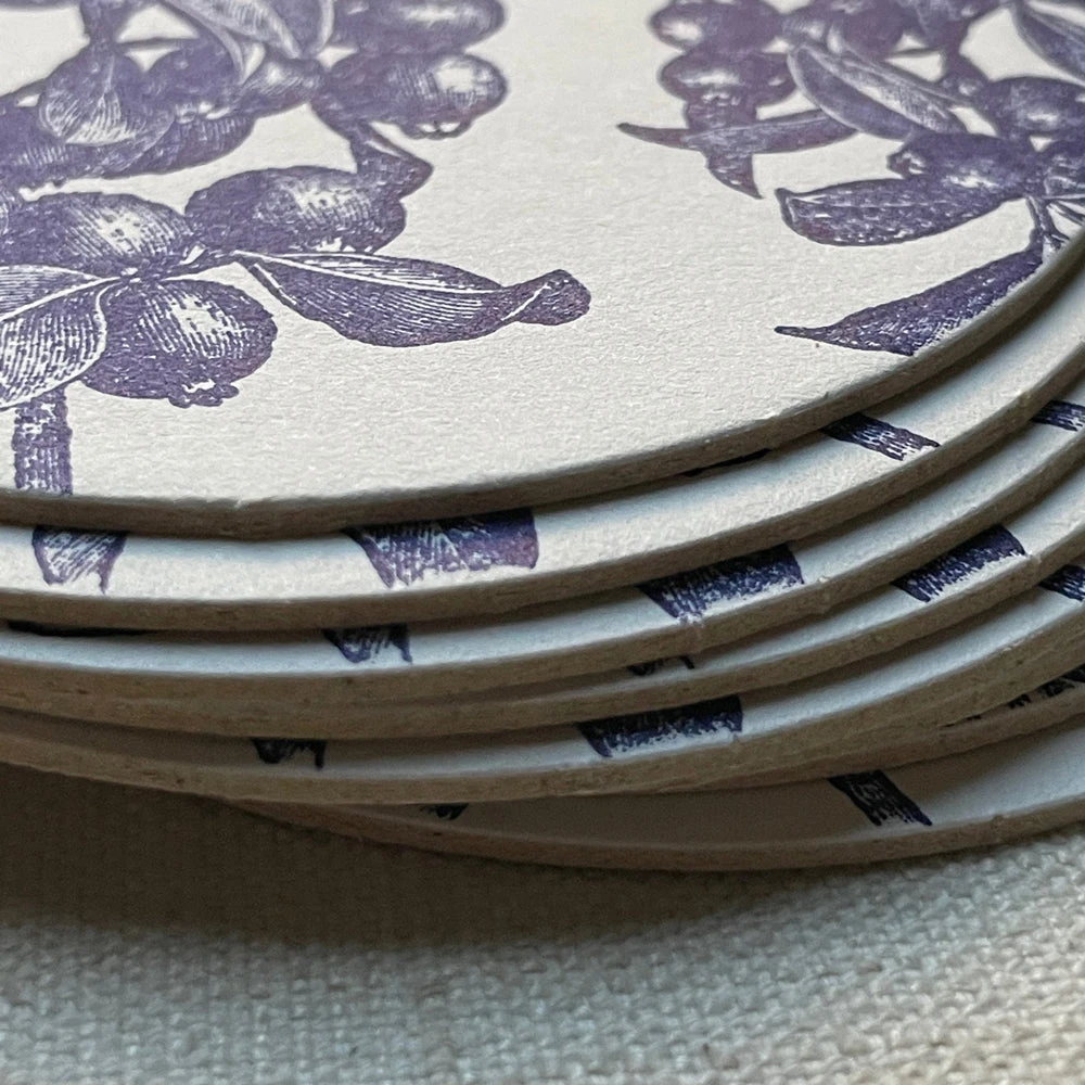 Sesame Letterpress & Design Dining & Tabletop Set Of 8 Letterpress Blueberry Coasters