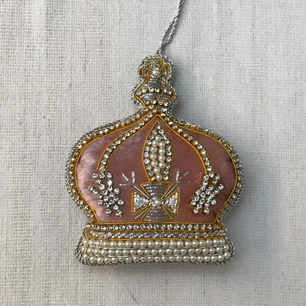 Tinker Tailor Pale Pink Velvet Crown Ornament With Crystals And Ermine Holiday