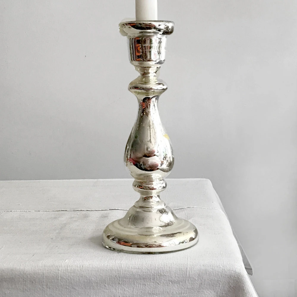 Vintage Decorated 19th Century Mercury Glass Candlestick