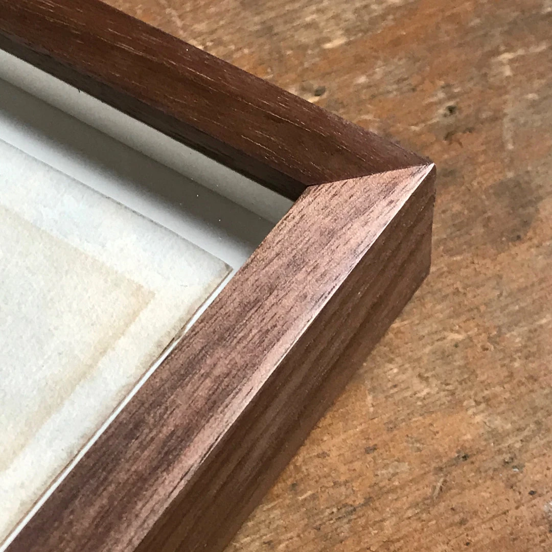 Framed pieces are floated in a natural wood frame with UV resistant plexiglass.